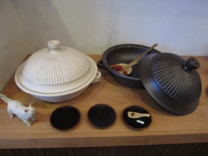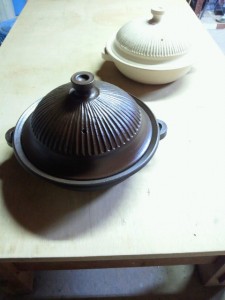 福井のタナカさんにお願いしていた白と黒の大き目の土鍋。