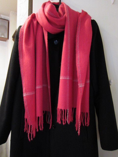 スモーキーな赤いストールが届きました。